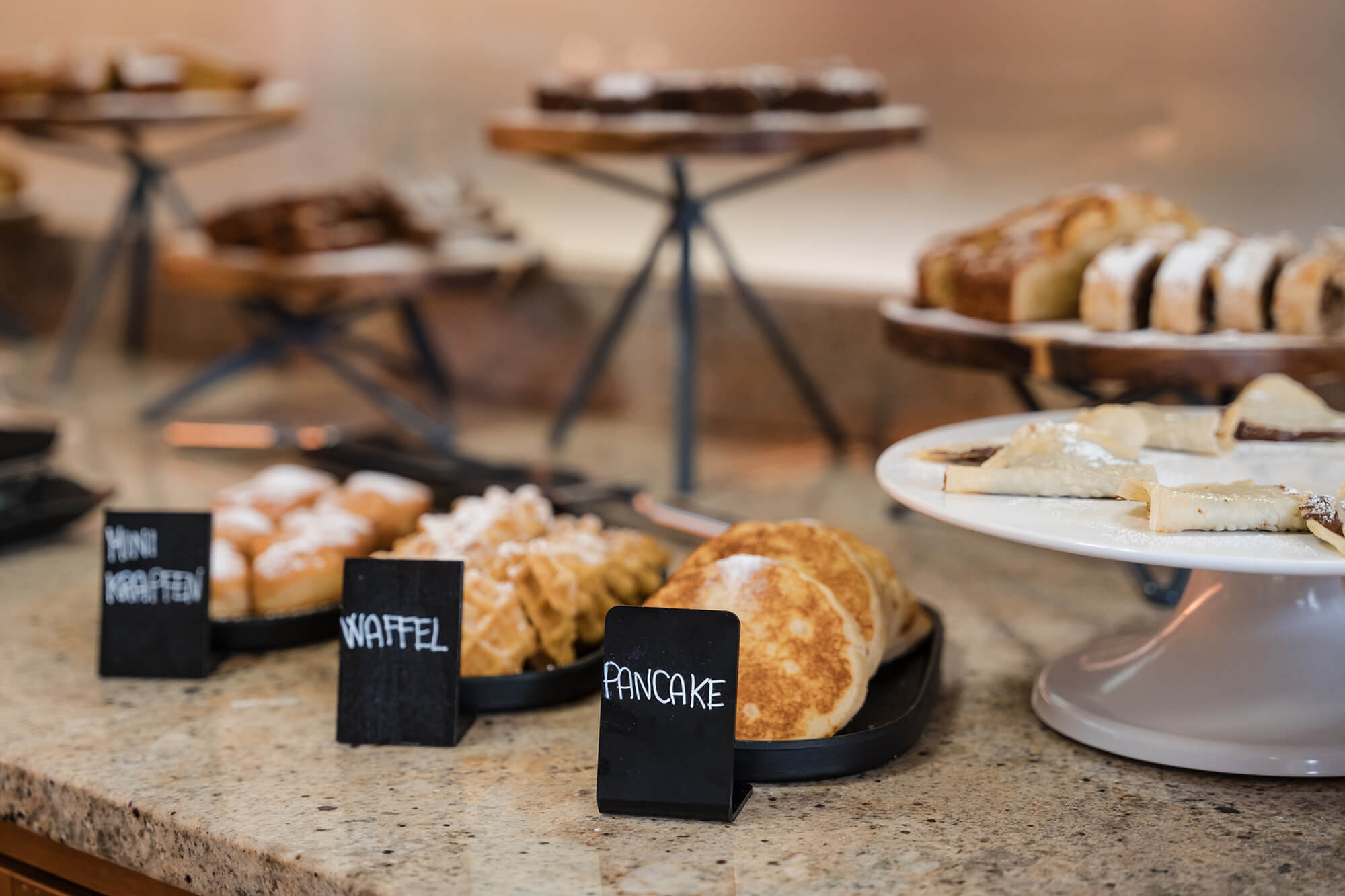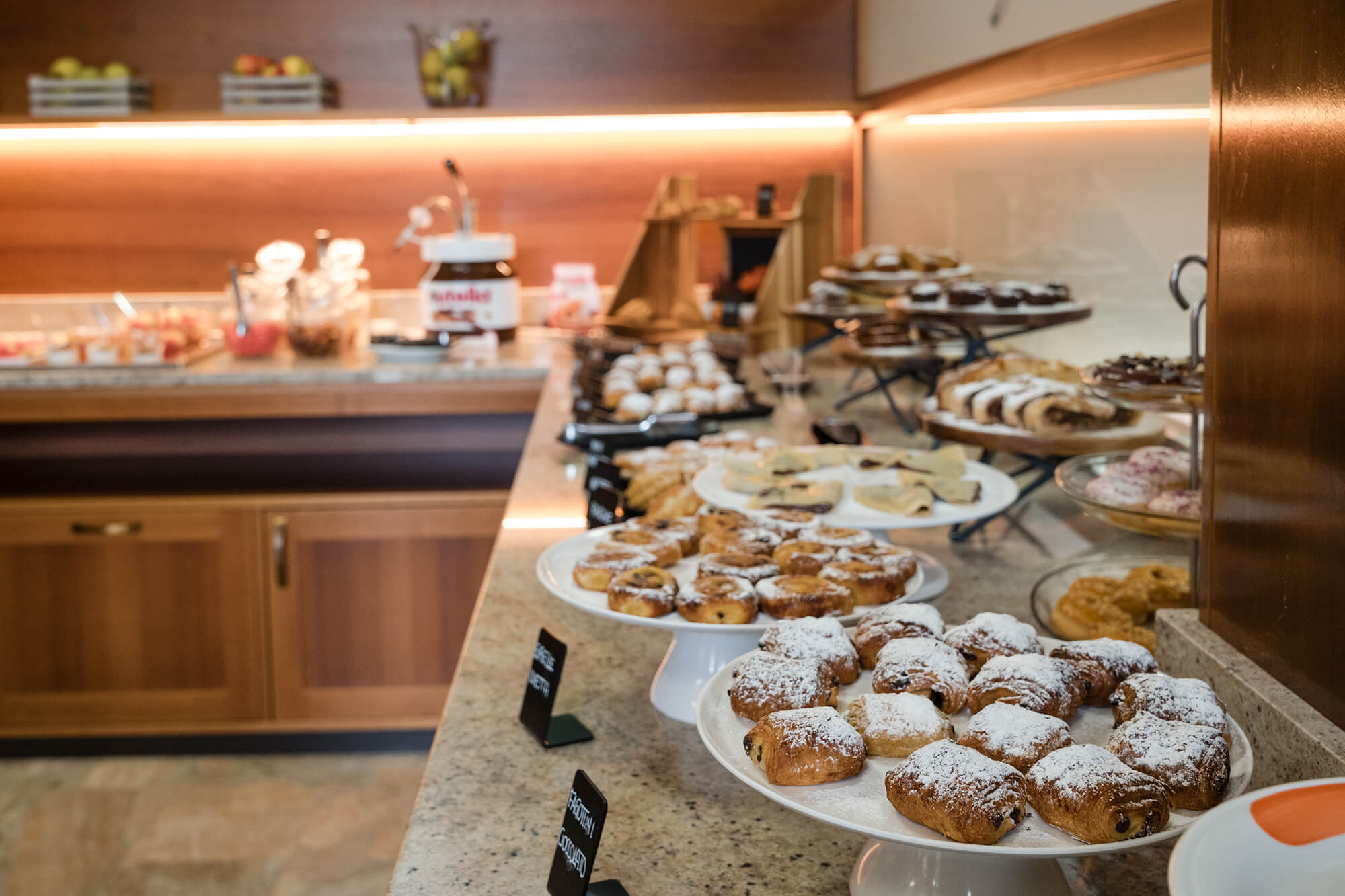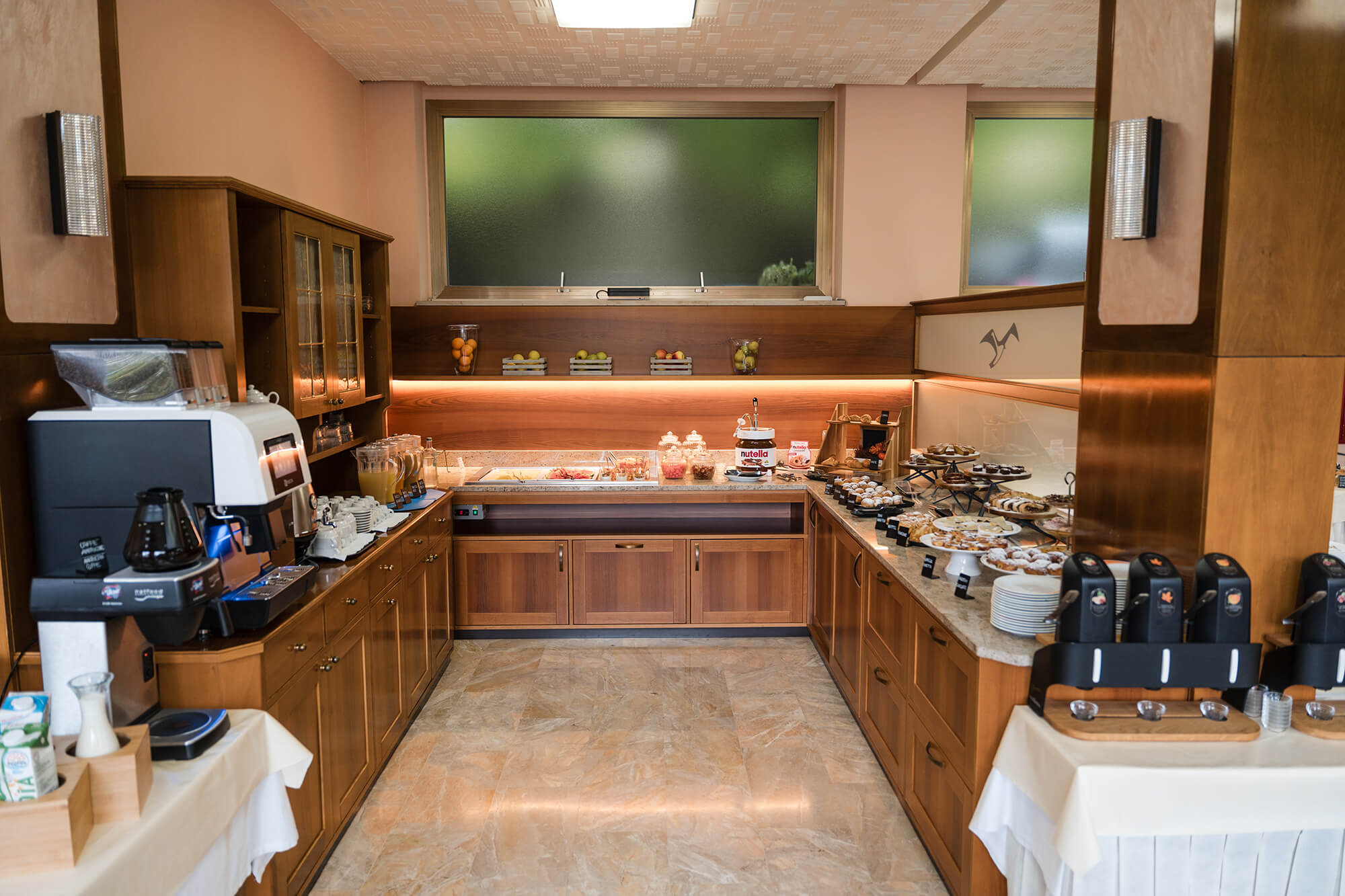 La nostra sala colazione vi accoglie con un generoso buffet, studiato per soddisfare ogni desiderio, dal dolce al salato. Lasciatevi tentare dalla fragranza delle brioches appena sfornate, dalle torte artigianali e da una selezione di confetture locali, oppure optate per l’energia del salato: tramezzini sfiziosi, salumi di qualità, formaggi del territorio e uova preparate al momento.
