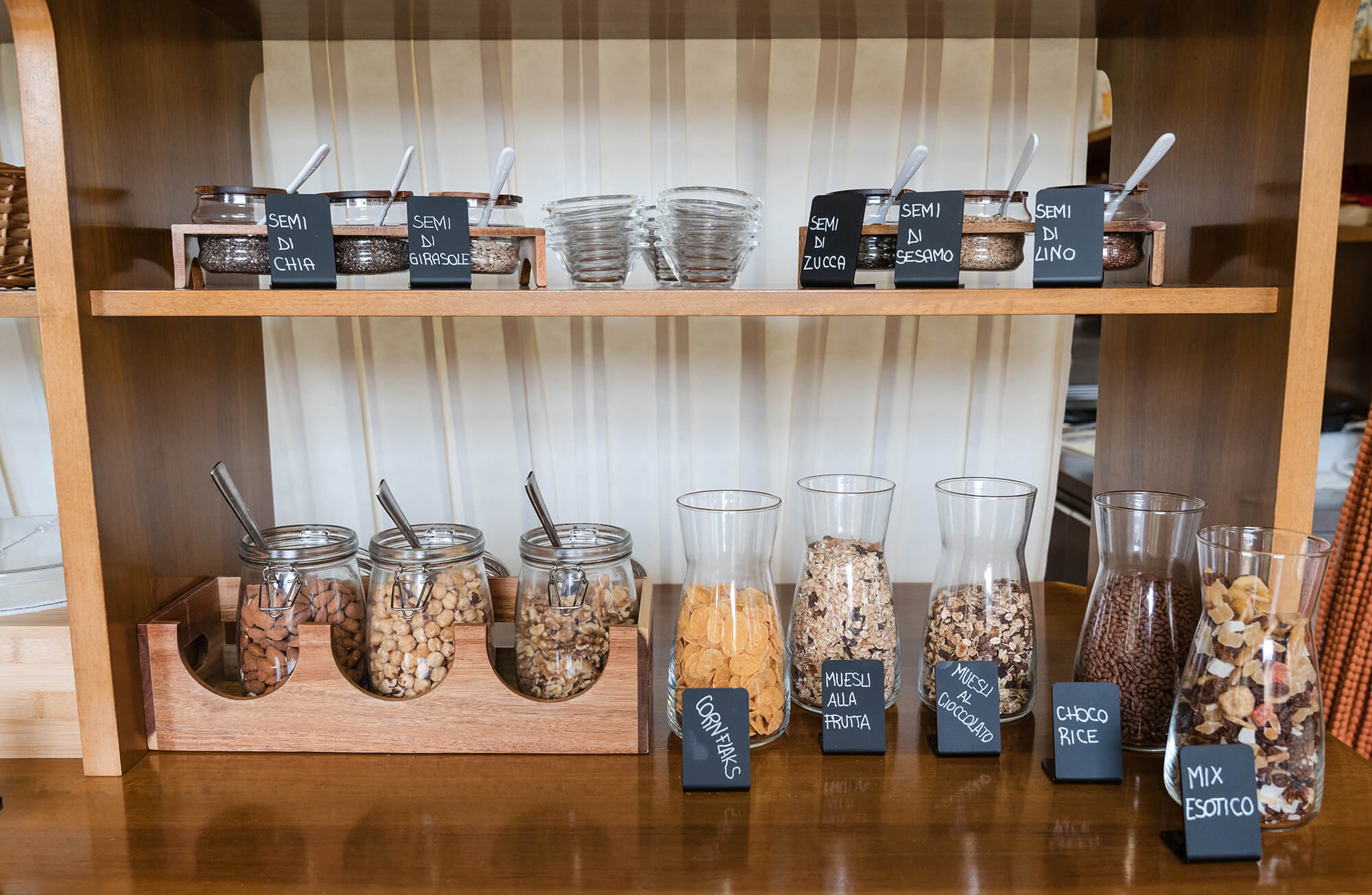 Completano l'offerta yogurt freschi, cereali, frutta di stagione e una caffetteria espressa che profuma di autentico espresso italiano.